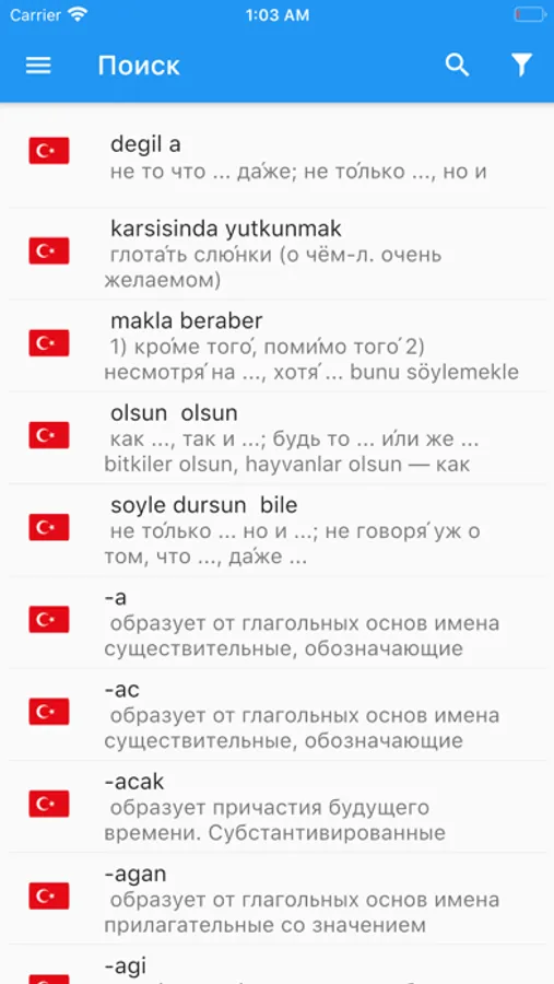 Надоело таскать с собой большие и тяжелые словари? Теперь всё необходимое будет у вас в смартфоне! Турецко-русский и русско-турецкий оффлайн-словари будут всегда с вами, где бы вы ни были - на учебе, в путешествиях или занимаясь турецким в домашней обстановке.