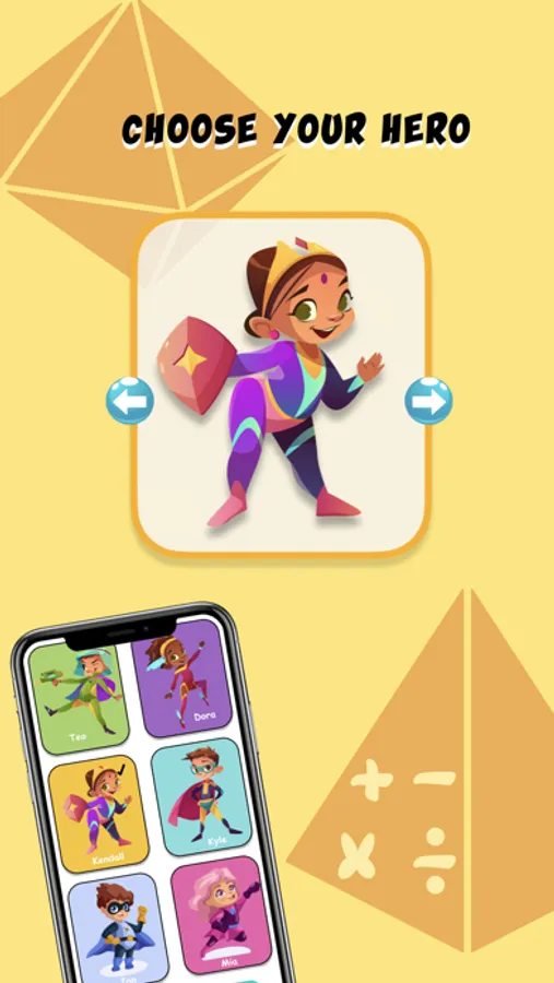 Pick a character – between 6 superheroes- to lead you through study levels and cheer you up. With this fun yet efficient game-like program, learning math is a captivating adventure!