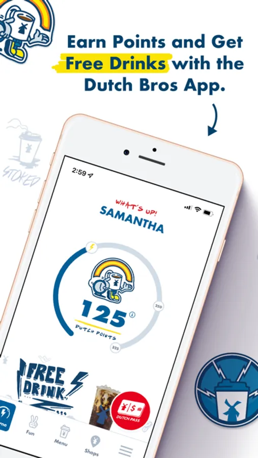 The Dutch Bros App: join the party! Use the new Dutch Bros App for a fun, contactless way to pay for your fave drinks, and earn rewards as you do!