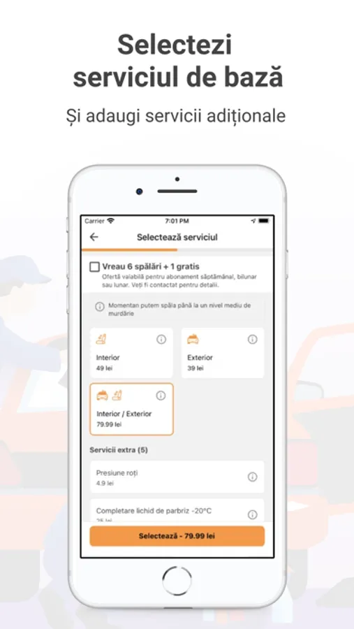 - Plătești rapid prin aplicație la fiecare spălare sau alegi un abonament lunar de spălări pentru și mai puține griji