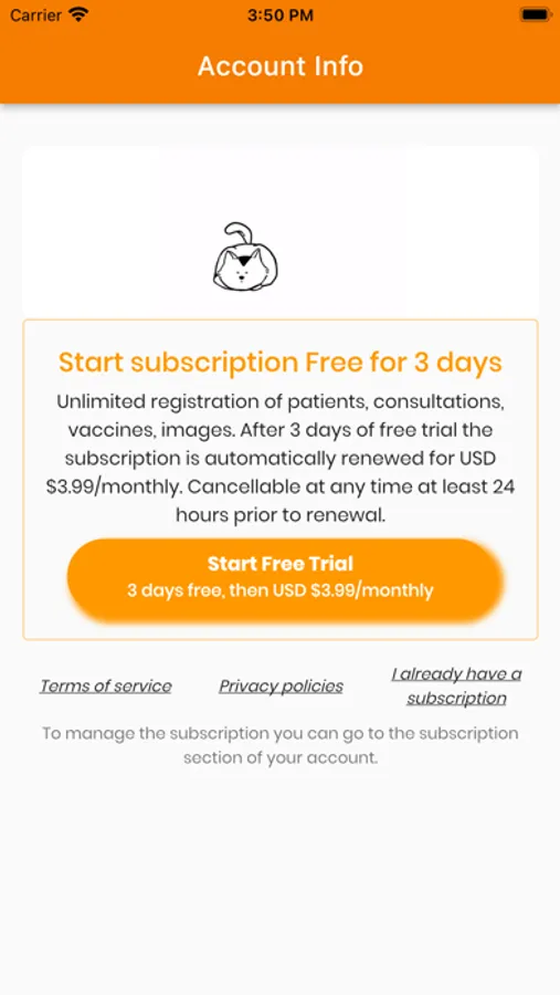 Enter information, photo of the patient (pet) and its owner.