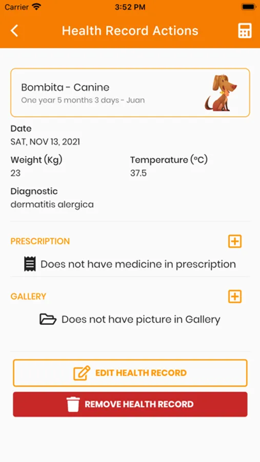 New option of medical history, you can see vaccines, deworming and consultations