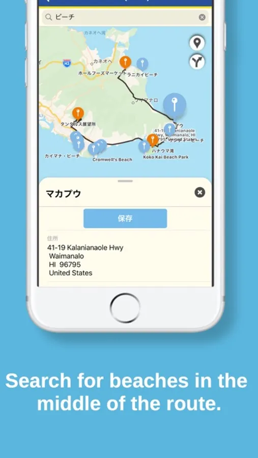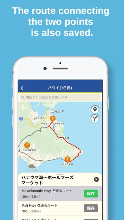 - When setting a route, the distance and required time are also displayed, and you can save your favorite route.