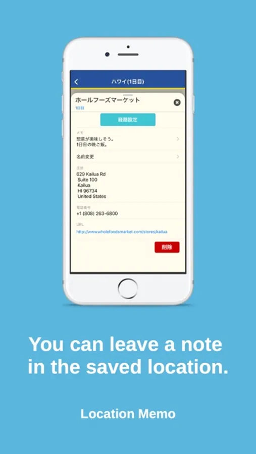 You can also save a memo of the saved point and a route connecting the two points.
