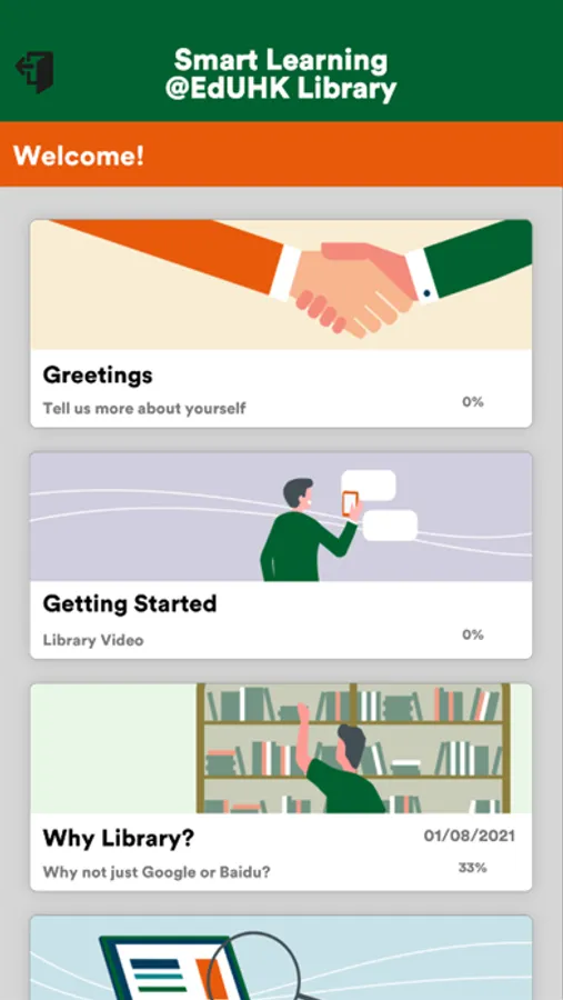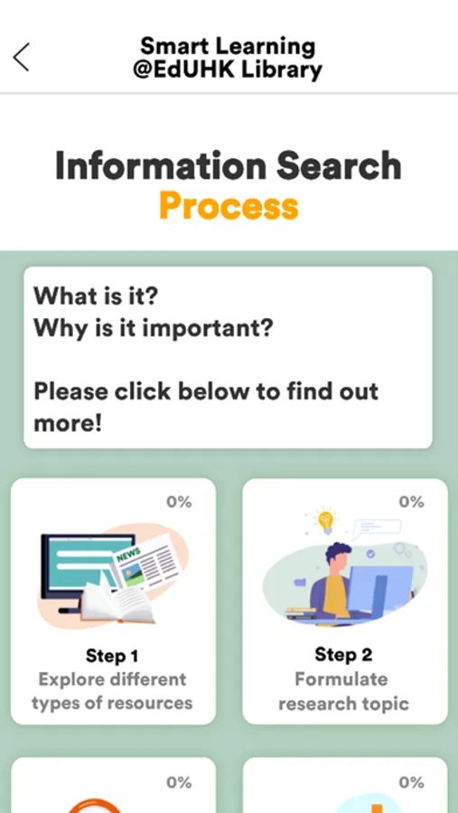 Contents of the app are path-oriented and you will be guided from starting point to complete the tasks. You can also select topics based on your needs and interests. Recommendations of choices will also be provided.