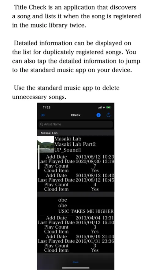 When this app is started, if the same song is registered in duplicate, it will be displayed as a list.