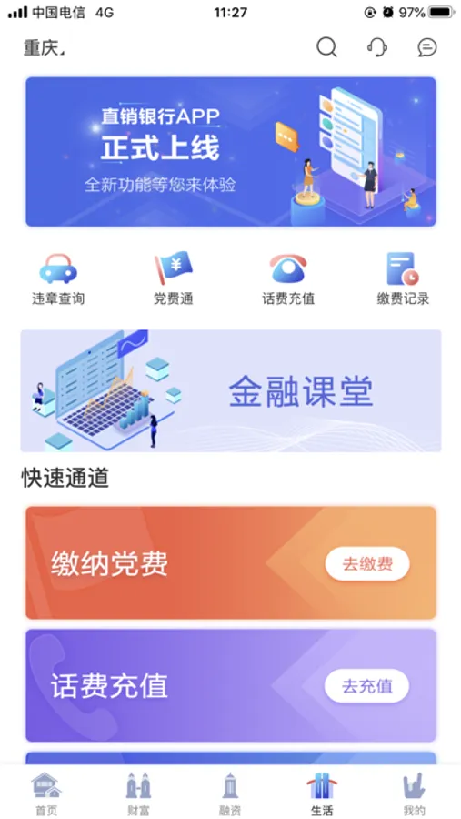 1.丰富的线上产品:理财、基金、基金宝、存款、贷款等产品满足您多样理财和资金需求。