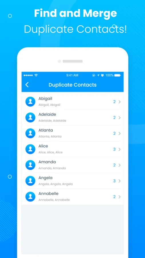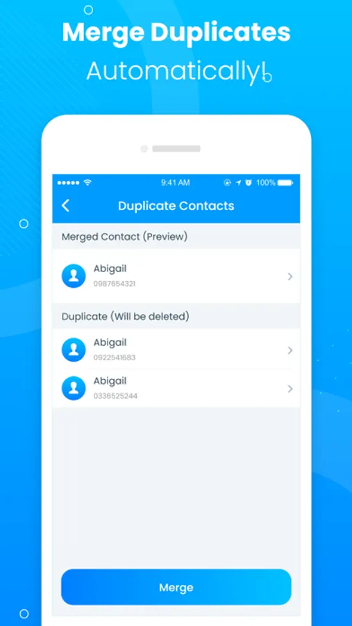 - Easily find and remove duplicate contacts, duplicate phone, duplicate email, duplicate name.