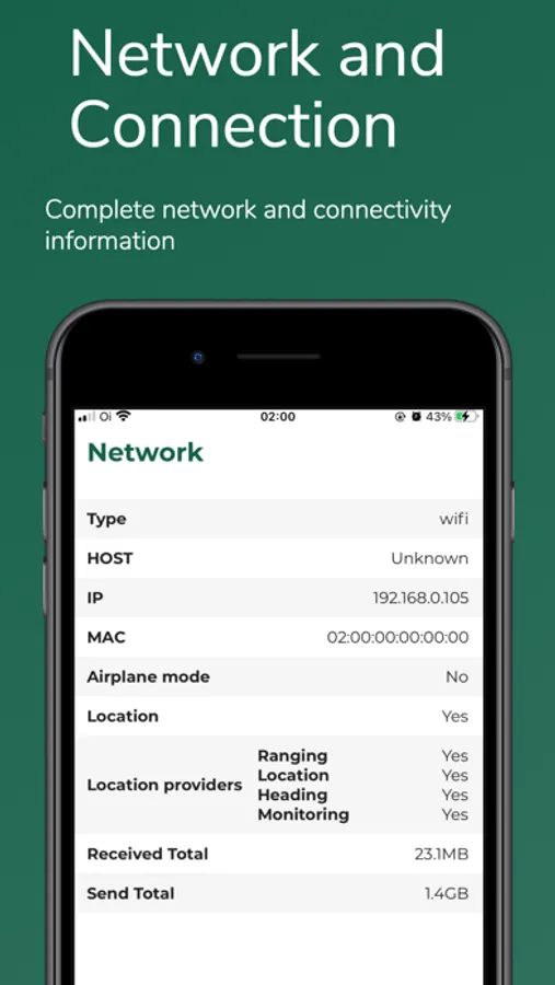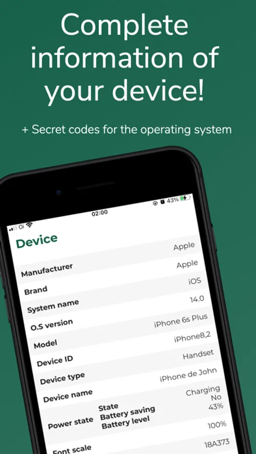 With Device Info you can find information about storage, battery, network and wifi, sensors, CPU, operating system and much more.
