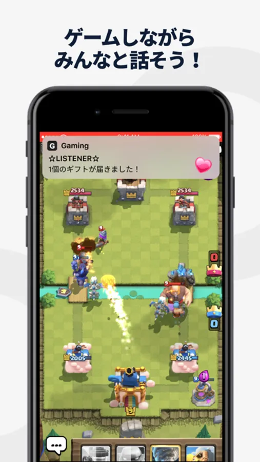 コメントやギフトをスマホの通知/音声でチェックしながらのゲームプレイが可能です。