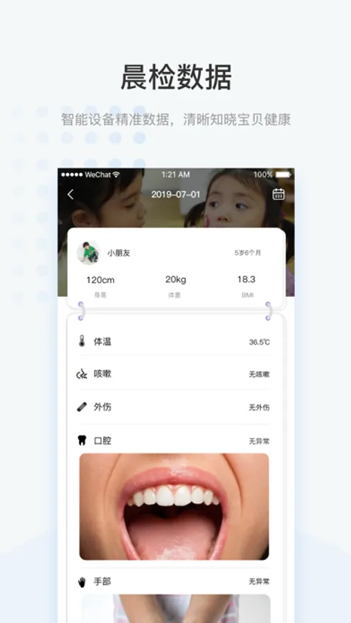 健康:实时查看晨检健康数据,了解宝贝身体健康情况。