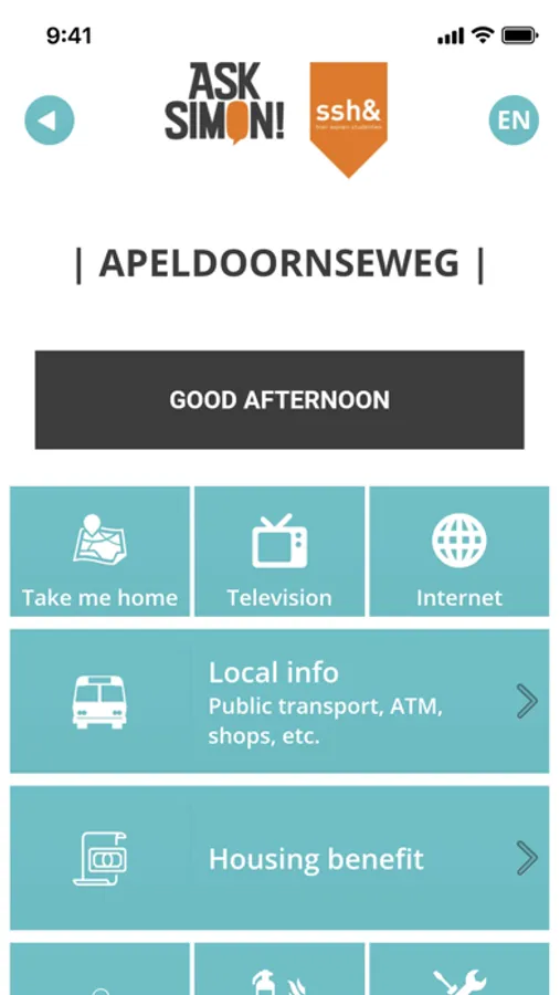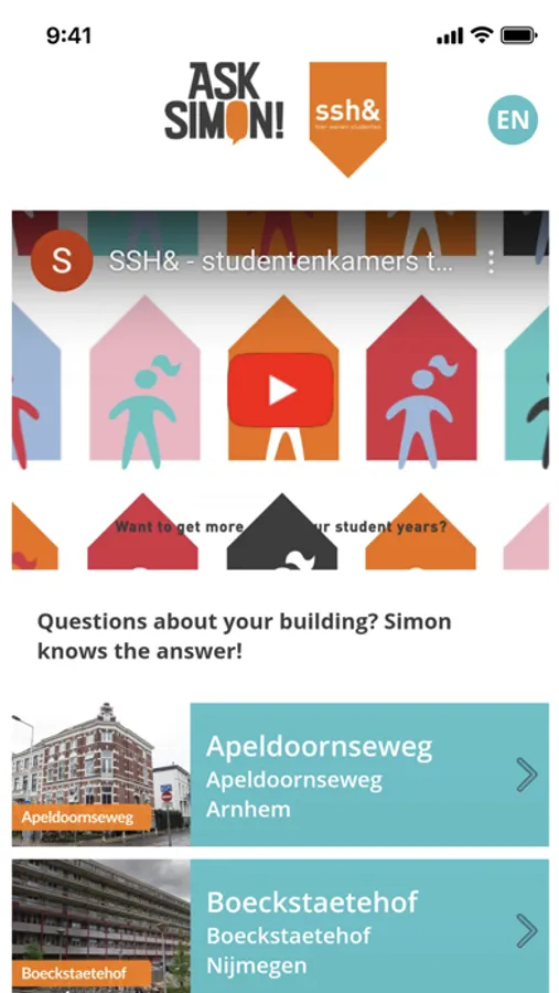 SSH&’s Ask Simon will show you everything you need to know about your housing complex. Thinks like information about your keys, internet, maintenance, cleaning, and waste separation.