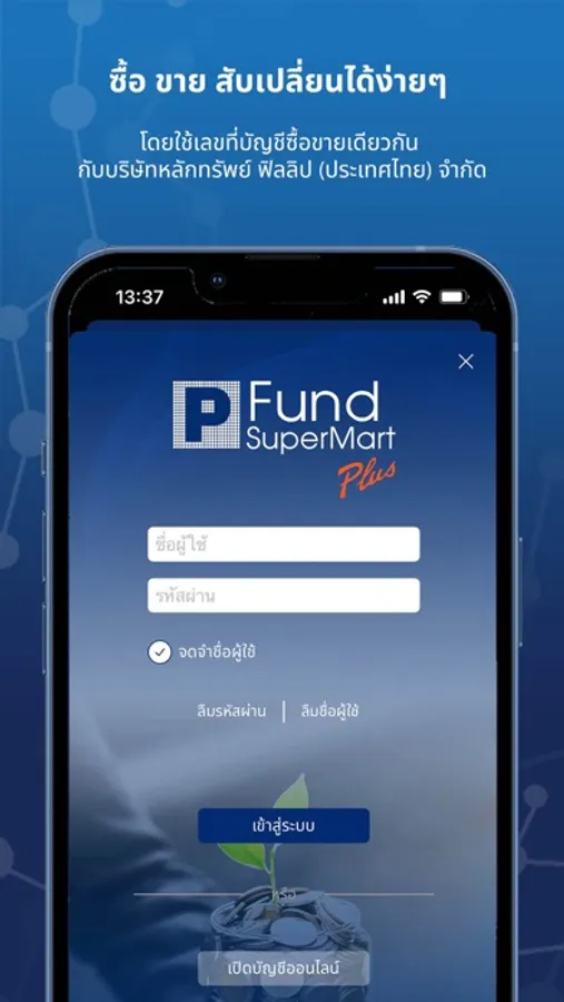 • Single sign-on: ซื้อ ขาย สับเปลี่ยนกองทุนรวมได้ง่ายๆ โดยใช้เลขที่บัญชีซื้อขายเดียวกันกับบัญชีหลักทรัพย์ บล. ฟิลลิป (ประเทศไทย) จำกัด (มหาชน)