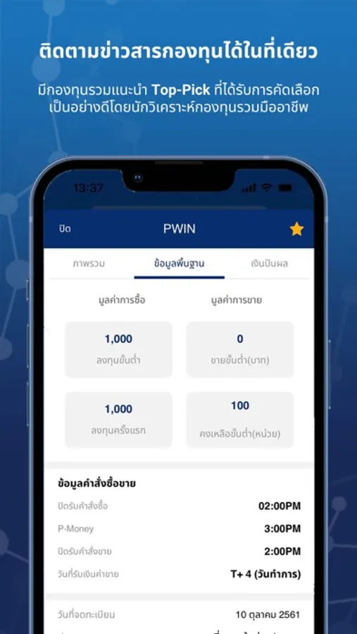 เปิดประสบการณ์ใหม่ กับการลงทุนในกองทุนรวมผ่านแอพพลิเคชั่นสุดล้ำ ที่เดียวครบทุกบลจ.ชั้นนำ 21 บลจ. ที่จะทำให้การลงทุนในกองทุนรวมเป็นเรื่องง่าย สะดวก รวดเร็วยิ่งขึ้น และสามารถติดตามผลตอบแทนจากการลงทุนของตัวคุณ หรือติดตามผลการดำเนินงานของกองทุนรวมที่น่าสนใจ ทั้งกองทุนลดหย่อนภาษี กองทุนทองคำ กองทุนต่างประเทศ และกองทุนรวมอื่นๆ ได้ทุกที่ทุกเวลา