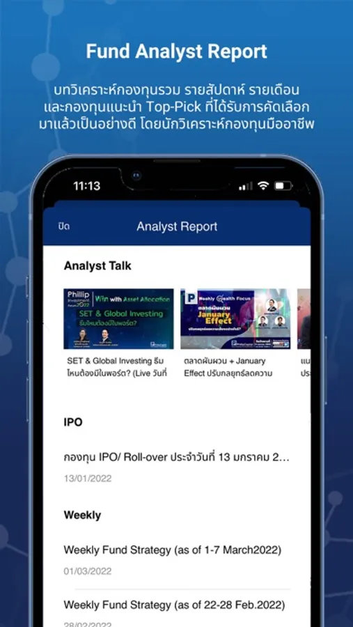 • Fund Analyst Report: บทวิเคราะห์กองทุนรวมรายสัปดาห์ รายเดือน และกองทุนแนะนำ Top-Pick ที่ได้รับการคัดเลือกมาแล้วเป็นอย่างดีโดยนักวิเคราะห์กองทุนรวมมืออาชีพ