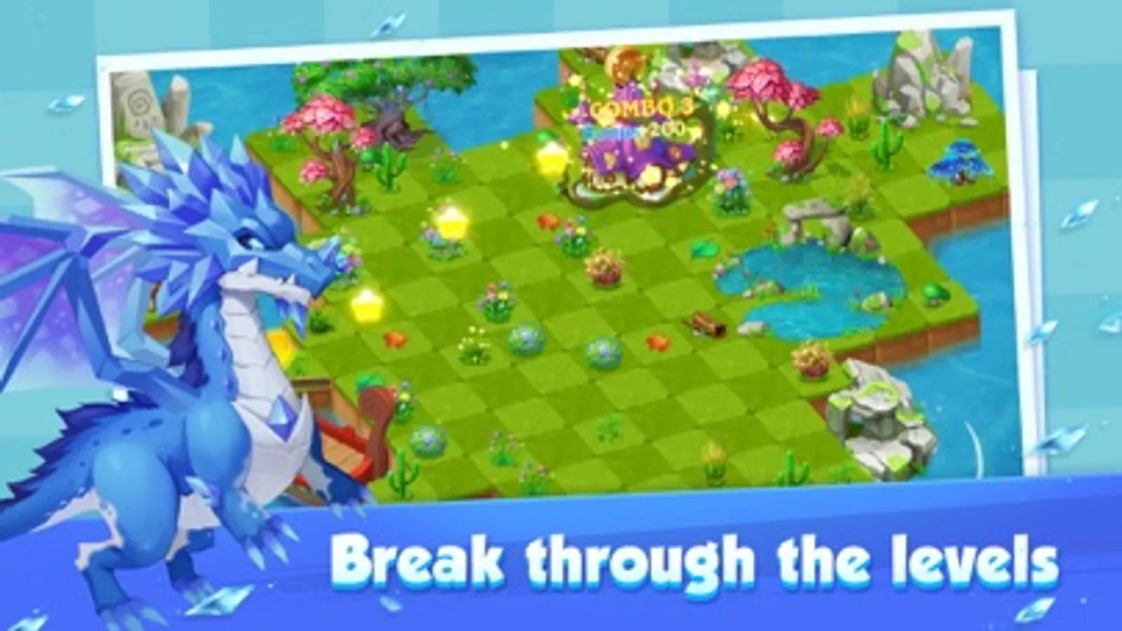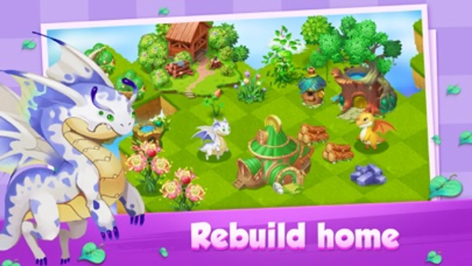 Dragon Home involves you into the world where the dragons built their home. However, it is now shrouded in darkness and mist; the air reeks of evil, and the land was deprived of its vibrancy and prosperity. Yet, where there is darkness, there is light. As the buds of life sprout from crevices and the emanating essence dispels the mist, healing a small swath of land, the Goddess of Healing and the dragons are saved. A true miracle of life! And you, as the last hope of the land, must use your wisdom and magic to match identical objects from plants to buildings, mountains to rivers, and even shooting stars to continue the healing. Match plants to collect essences to restore wounded lands; match mountains to decorate your home, and match dragon eggs to breed dragons to dispel the mists and rejuvenate this magical world!