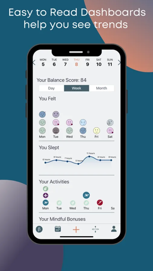 By encouraging users to track their mood, sleep, physical activity, and mindfulness activities we encourage and empower our users to feel better!