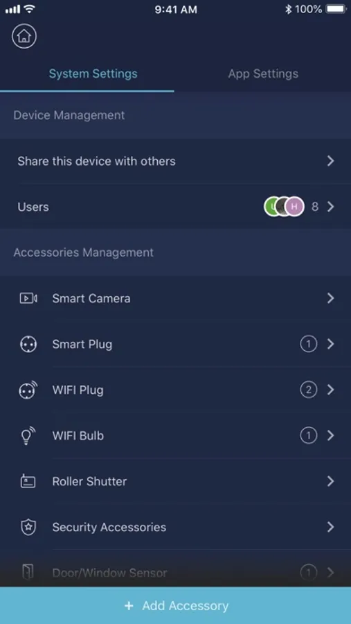 This App can manage all our official security accessories like Contact Sensors, Motion Sensors (pet-immune optional), Remote Controllers, CO Sensors, Gas Sensors, Smoke Detectors etc. It also works with Smart Cameras and Smart Plugs, which allow users to watch live video or recorded files, or turn ON/OFF the home appliances remotely. With built-in guidelines, users can run the system quickly even without a manual, including daily operations and professional settings.