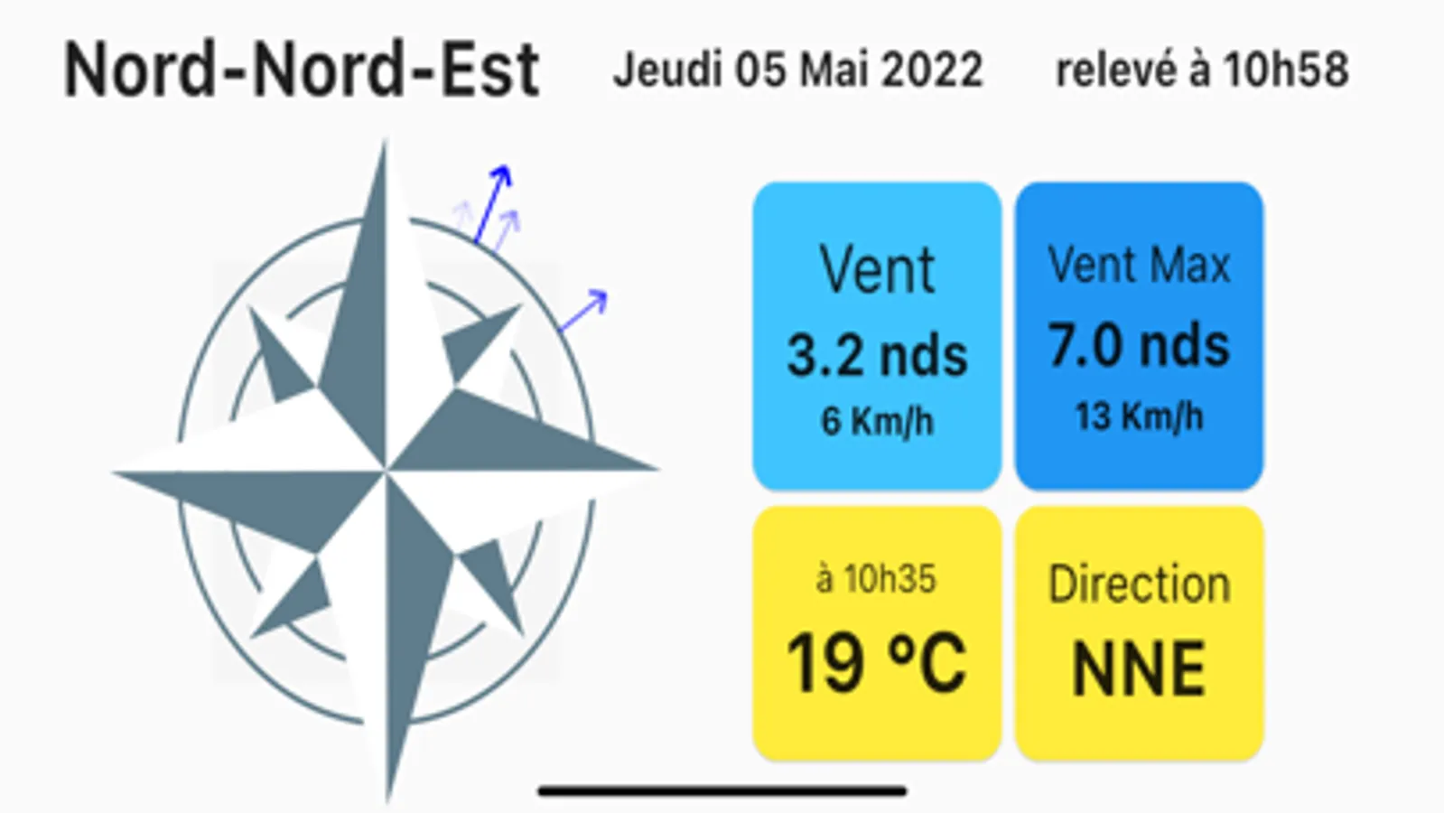 L'application Anémomètre CNPA vous permet de connaître la force, direction du vent ainsi que la température. Club Nautique de Marennes-Bourcefranc. Charente-Maritime.