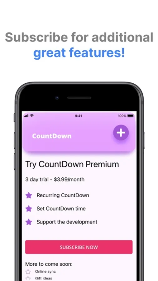 With CountDown you can create as many events as you like, so you won’t forget anything ever again!