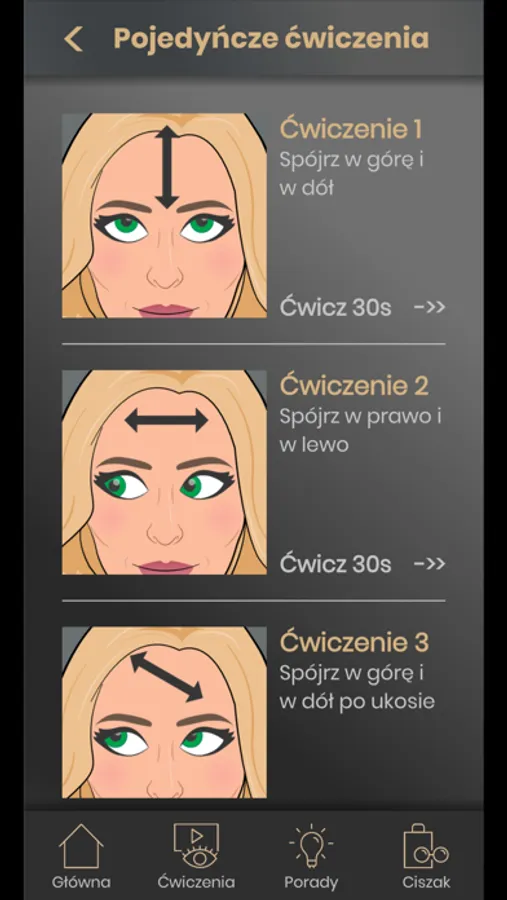 Zachęcamy do pobrania aplikacji i regularnego wykonywania ćwiczeń oczu. Jesteśmy przekonani, że w krótkim czasie odczujecie wyraźną poprawę widzenia.