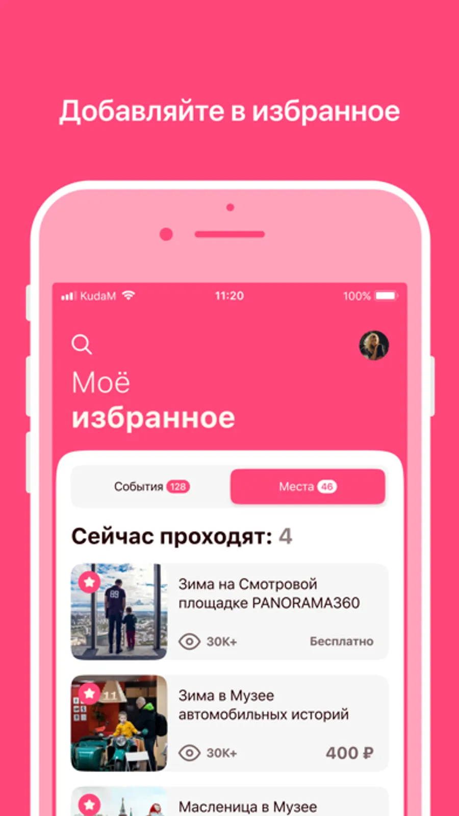 ⁃ выбирайте категории мест и событий, которые интересны именно вам
