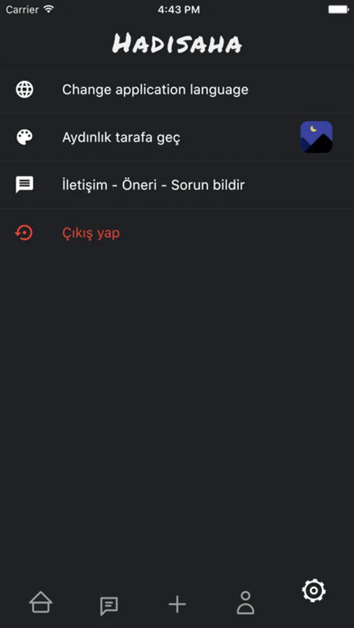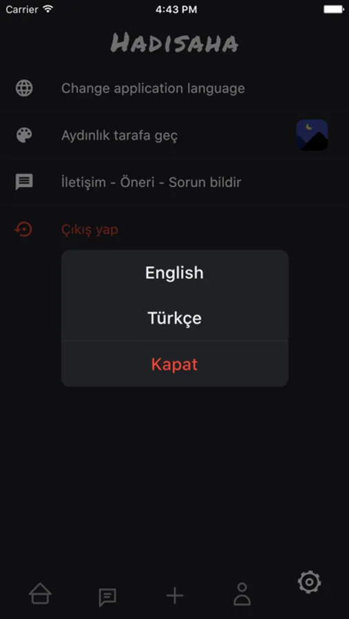Hadisaha uygulamasında gece ve gündüz modu, İngilizce - Türkçe gibi yardımcı özellikler mevcuttur.