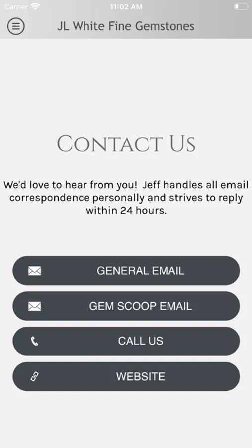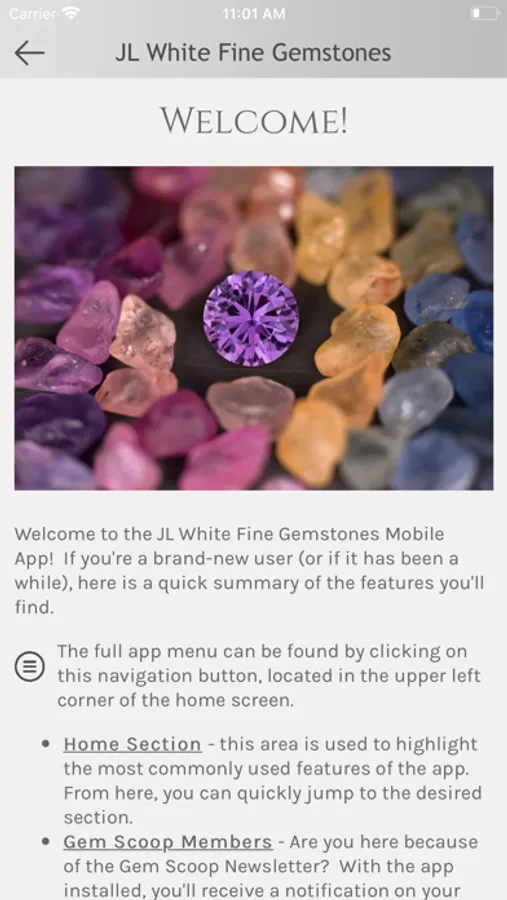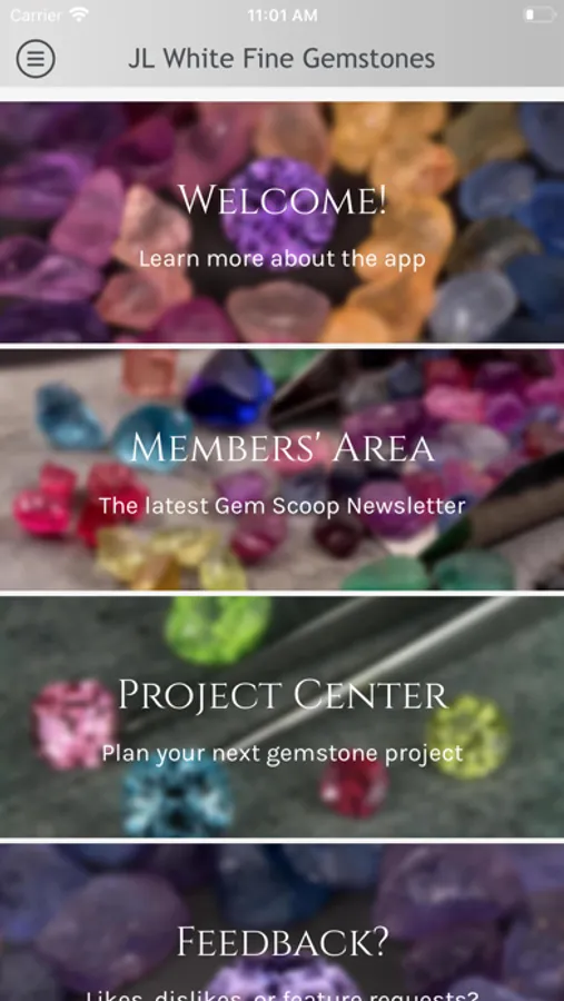Download the JL White Fine Gemstones mobile app to learn more about the world of colored gems, browse gem and jewelry galleries for inspiration, begin a design project with us, and instantly receive notifications when Gem Scoop newsletters are sent to our subscribers! You can even easily contact us from within the app to ask questions or to initiate a purchase.