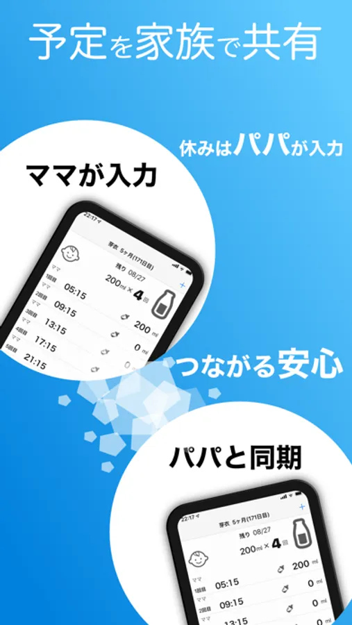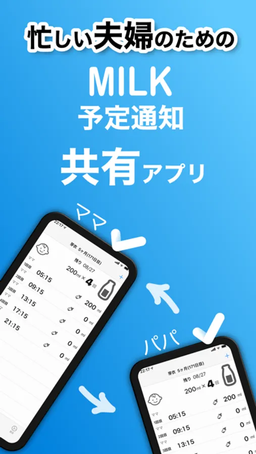 登録不要の共有アプリ.ミルクの予定を共有できる.