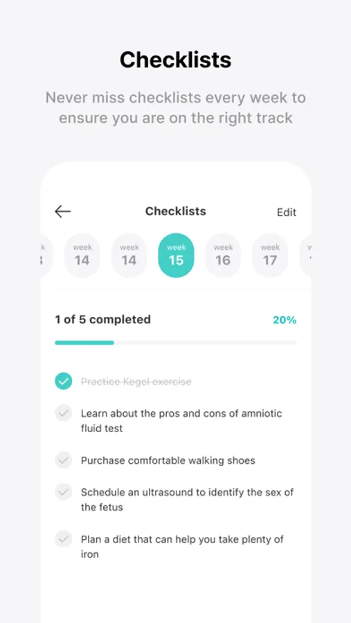 • Check and make your own list for everything you should do during your pregnancy.