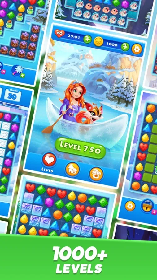 -Pass levels to unlock magic cute friends to help you win the match game.