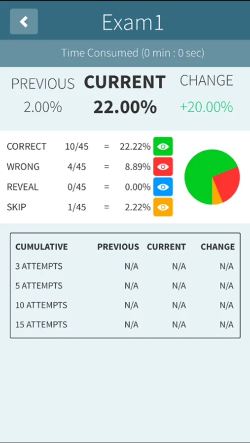 A list of correct, wrong, skipped and revealed answers are recorded for monitoring.