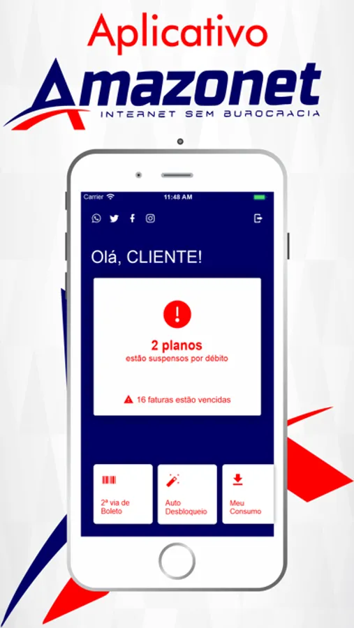 A Amazonet quer te manter sempre conectado e estar cada vez mais próxima de você! Com esse aplicativo você terá acesso a todas as facilidades de uma empresa conectada que prioriza a qualidade dos serviços e o bem estar de seus clientes.