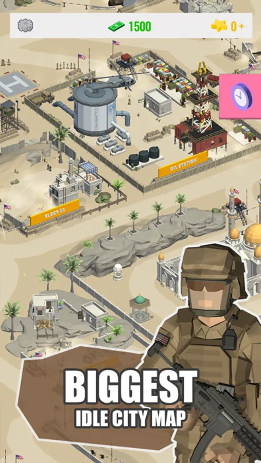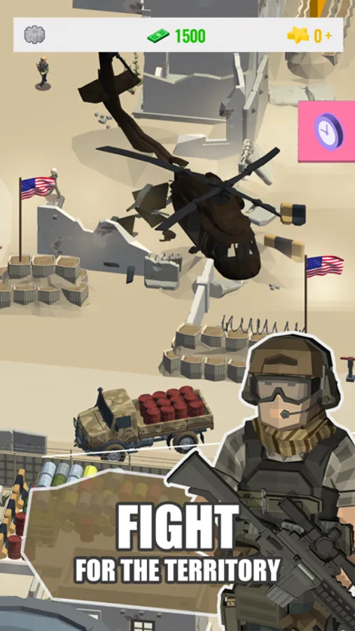How is our game different from all other Idle games? Our game is most complex out there, with a lot of 3d interactive fighting combat situations. Realistic 3d animations and interactions between soldiers make you feel like on a real battlefield. You have more than 16 areas to unlock throughout the game, with a great variety of weapons, tanks, cars, airplanes, and helicopters.
