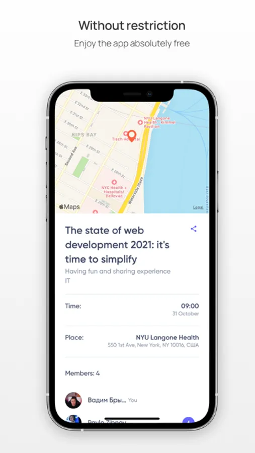 A modern network is now available everywhere - in bars and cafes - just create a meeting or join an existing one.