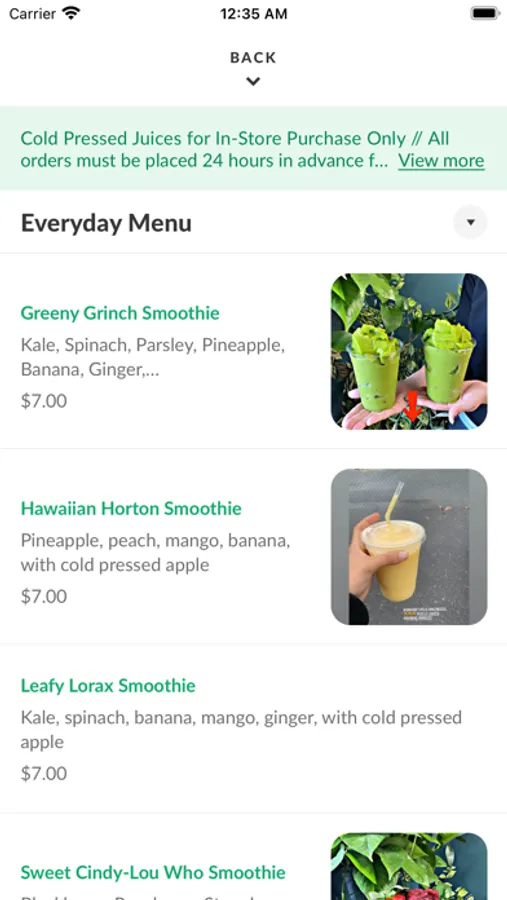 With the Cellf Juices mobile app, ordering food has never been easier. Whether you're looking for a quick snack or a full meal, we've got you covered. Just browse our easy-to-use menu, customize it how you'd like, place your order using our secure payment system, and sit back! A push notification will alert you when your order will be ready.