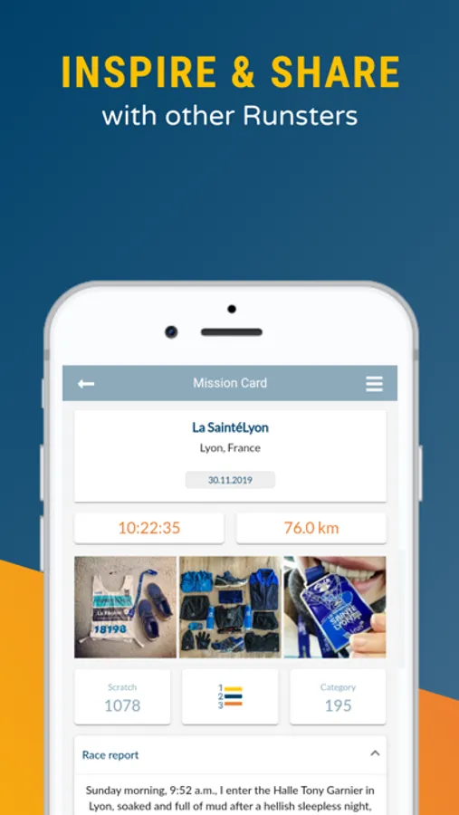 The running app for races and bibs. Save your racing history. Get your individual Runster stats. Find endurance events worldwide (marathon, trail, triathlon, obstacles racing...). Plan your upcoming races and challenges. Complete original race collections or series. Win free entries to partner events.