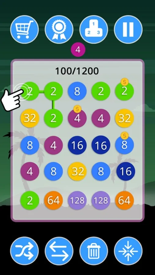 248… is a super fun and easy game to play. You just need to connect the dots with the same numbers vertically or horizontally. Your numbers chain will then merge and pop into a new dot with a new number (this new number will be a multiple of the dots you just connected…)