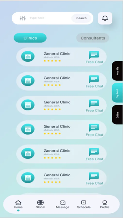 الأول من نوعه في الجمع بين (العيادات والمستشفيات والمختبرات ومراكز العلاج الطبيعي) محليا وعالميا، وتسهيل عملية الحجوزات والمواعيد. وتقديم كافة الخدمات الوقائية والرعاية الطبية للمرضى من زرع أعضاء وإجراء العمليات الجراحية وتركيب أطراف صناعية... والعديد غيرها. كما يقدم استشارات صحية مجانية مقدمة من قبل اخصائيين واستشاريين لكافة أفراد المجتمع