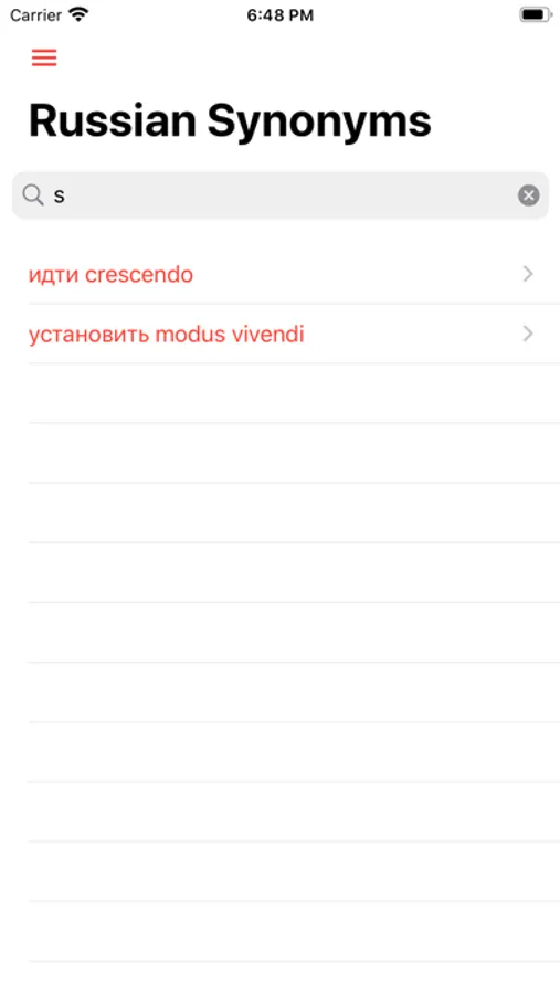 Russian Synonyms Dictionary helps students, teachers, or lecturers in understanding and remembering russian synonyms. Russian Synonyms Dictionary is equipped with a fast search system function that can find words that are desired or needed by the user.