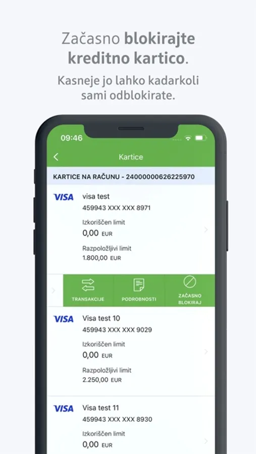 • pregled aktivnih depozitov, kreditov in poslovnih plačilnih kartic,