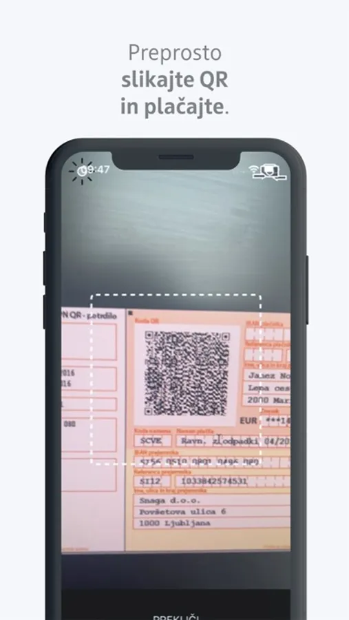 • priročna funkcionalnost Slikaj in plačaj, ki vam omogoča, da s kamero na mobilni napravi zajamete podatke s položnice,
