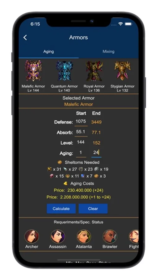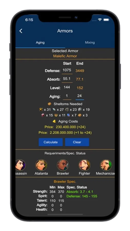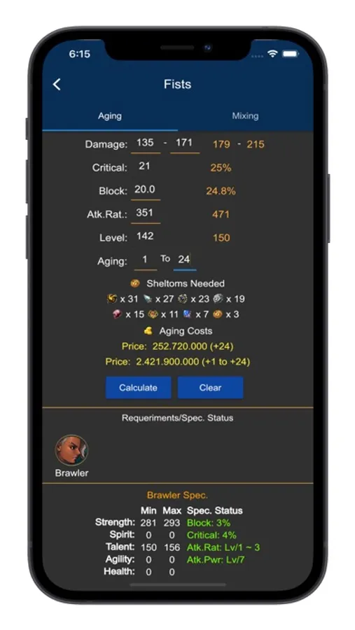 Calculate the status of your items to find out how they will be after they are submitted to the aging or mixing process simply and quickly!