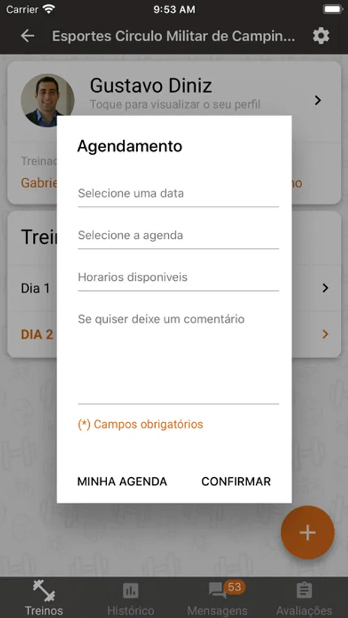 Com o aplicativo Esportes do Círculo Militar de Campinas você tem acesso aos seus treinos e avaliações físicas. Na parte de treino você poderá acessar sua ficha e ver os exercícios detalhadamente e na avaliação física você poderá conferir seus resultados e acompanhar sua evolução. Mais uma comodidade para você!