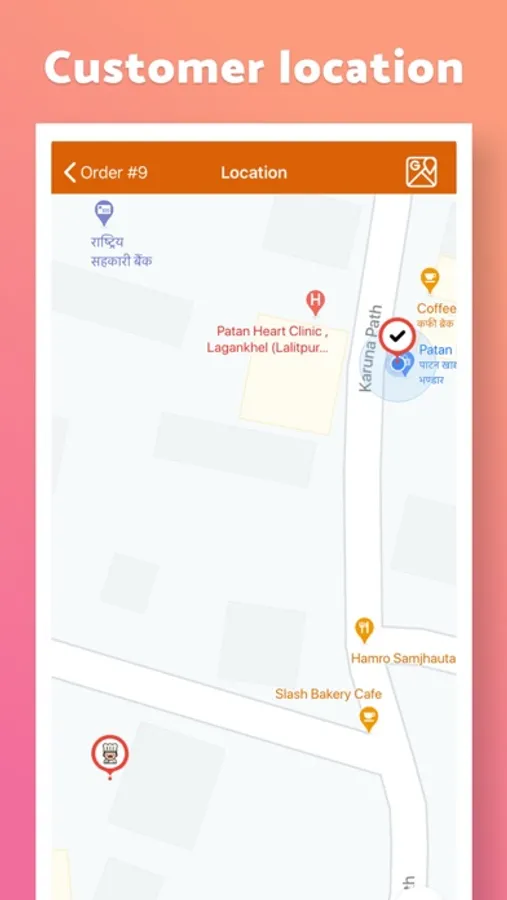 8) Restaurant can click google pin to open google map and see the direct to customer from current location.