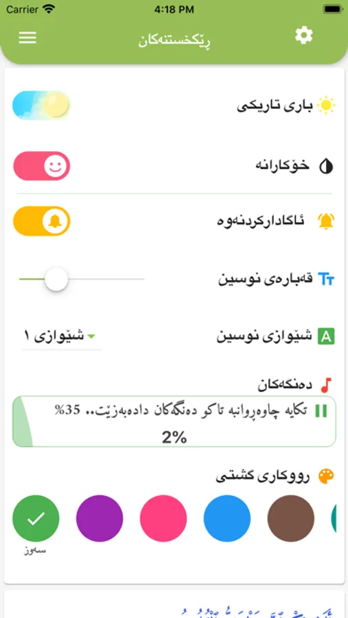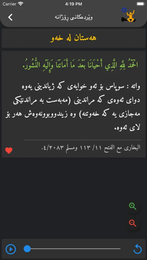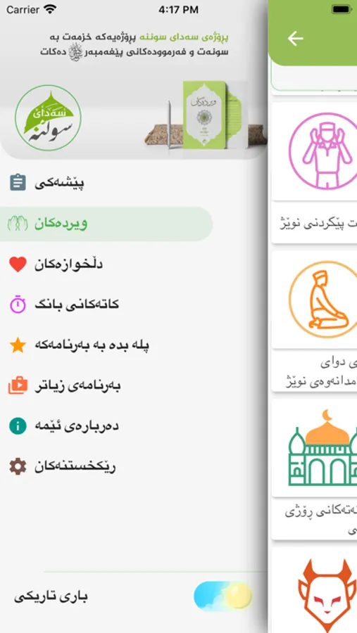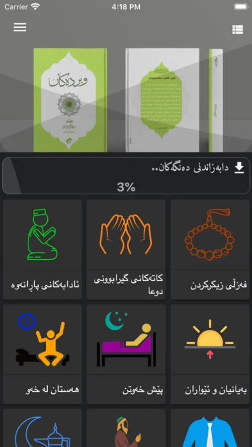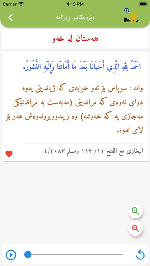 بهرنامهیهكه ههموو ویردهكانی ڕۆژانهی لهخۆ دهگرێ به نووسین و خوێدنهوه،