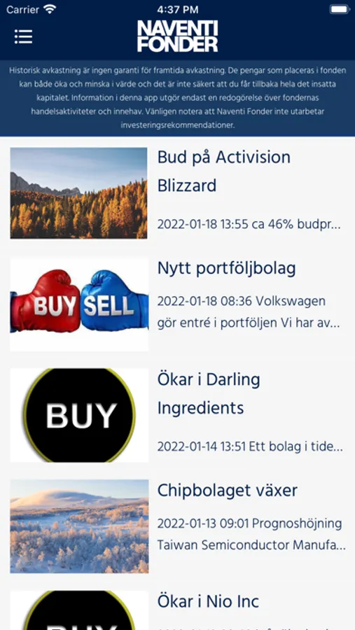 Få de senaste nyheterna och uppdateringarna om våra fonder direkt i mobilen. Ta del av information om innehav, rapporter och annan intressant läsning kring våra fyra fonder Offensiv Flex, Balanserad Flex, Defensiv Flex samt Global Företagsobligationsfond.