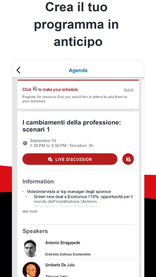 "La community di Smart Building Italia: eventi, aziende, professionisti e prodotti nell’unico marketplace virtuale dedicato al mondo dell’edificio intelligente. Scopri tutte le novità del mercato italiano, contatta direttamente i principali player, ottieni tutte le novità in anteprima e partecipa agli appuntamenti esclusivi. Che tu sia un produttore, installatore, un progettista o un system integrator, questa è l’app che fa per te: consolida il tuo network e amplia le opportunità di business con Smart Building Italia.