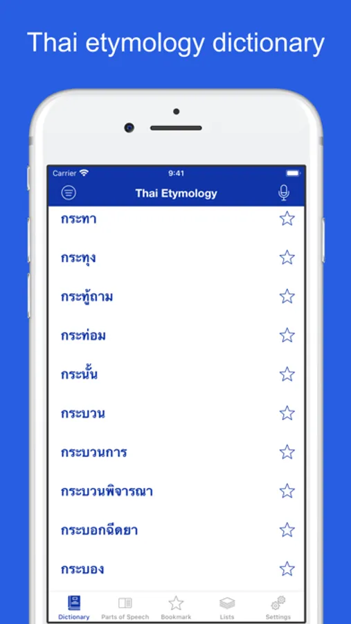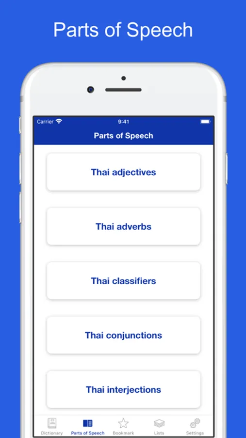 - Thai nouns, verbs, adjectives, adverbs, prepositions, classifiers, conjunctions, etc.