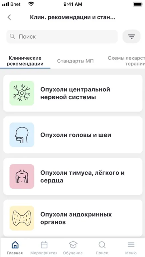 В структуре мобильного приложения ONCOTODAY выделено более 15 тематических разделов: